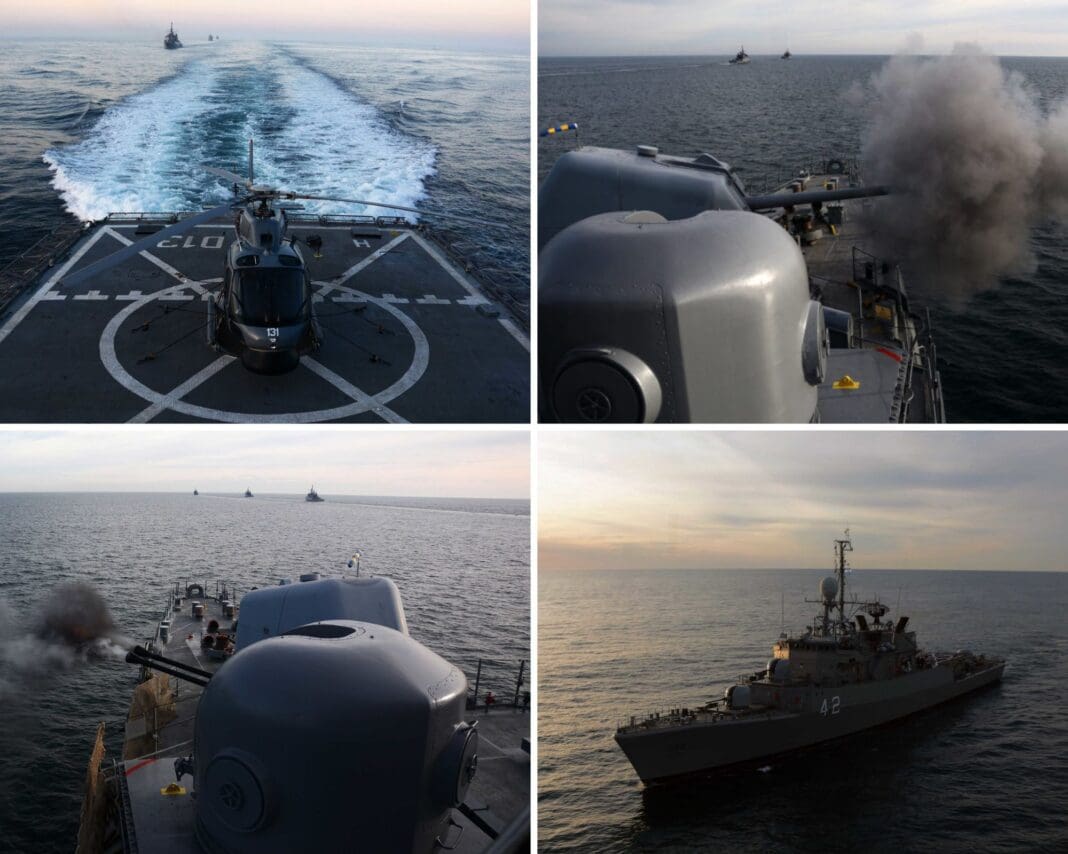Las maniobras incluyeron ejercicios de tránsito bajo amenazas múltiples donde se ejecutaron prácticas de guerra antisuperficie, guerra electrónica, combate antiaéreo contra las unidades aeronavales y maniobras tácticas. También se practicaron formaciones, evoluciones tácticas, comunicaciones, empeñamiento de los sistemas de armas y tiro efectivo con cañones antiaéreos Breda Bofors 40 mm., y cañones antisuperficie Oto Melara de 76 mm. (corbetas) y 127 mm. (destructor).
