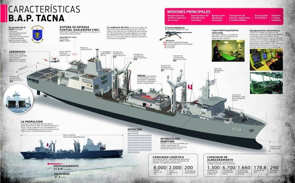 Incorporado a finales del año 2014, B.A.P. TACNA es el principal Buque de Apoyo Logístico de la Marina de Guerra del Perú, enfocado en tareas de reabastecimiento de combustibles y aprovisionamiento en combate de la fuerza. Perteneciente a la clase Amsterdam, fue el primero de un total de dos buques petroleros construidos para la Real Armada de los Países Bajos. Siendo finalmente el único que finalizó su construcción y entrada en servicio, ya que la restante unidad fue cancelada.