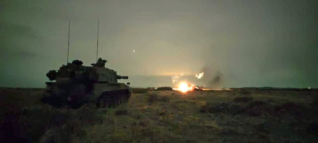 El siguiente paso consistió en un practica de tiro con munición de subcalibre en condiciones diurnas y nocturnas a través del empleo de obuses autopropulsados VCA Palmaria de 155mm, empleando la para designación y seguimiento de blancos a vehículos aéreos no tripulados.