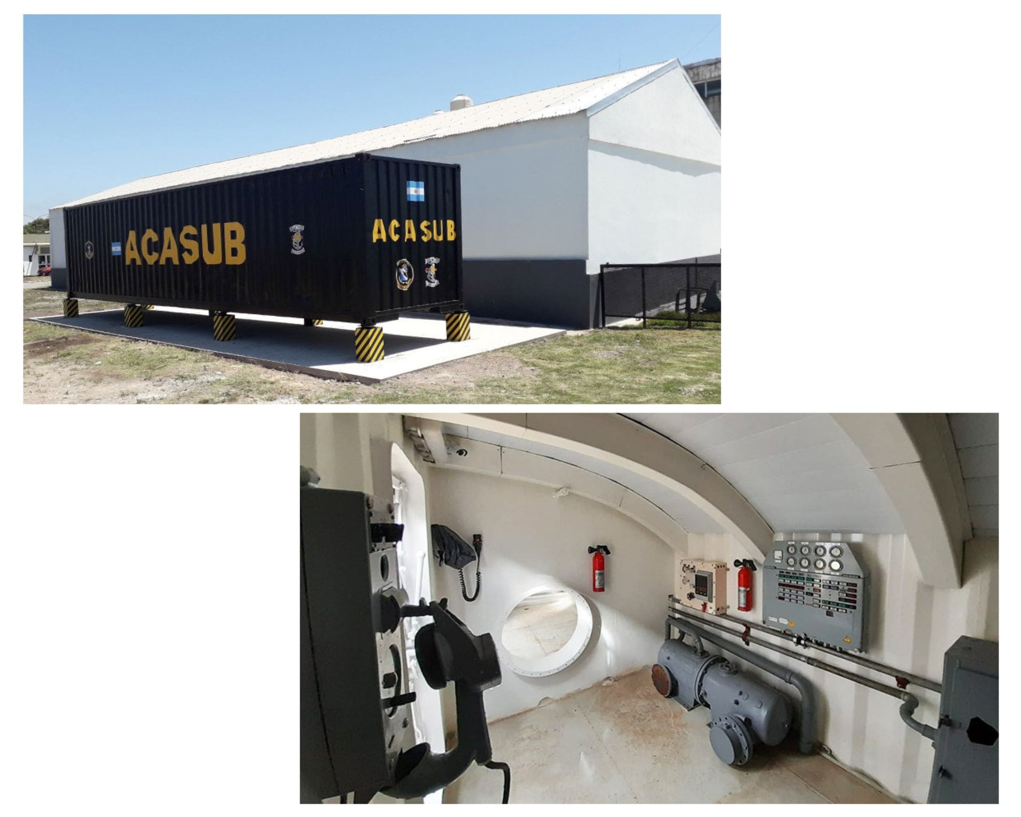 El nuevo simulador, denominado ACASUB, con cuatro compartimentos; el primero consiste en un cuarto de Control de Ejercicios, seguido de dos áreas de ejercicios comunicadas y un vestuario. Fue diseñado y construido en la Base Naval Mar del Plata utilizando como plataforma un contenedor marítimo de 40 pies -12,3 metros de largo, 2,36 metros de ancho y 2,40 metros de alto-, destacándose por su interior revestido generando la curvatura propia de las unidades sumergibles para simular esa ambientación.
