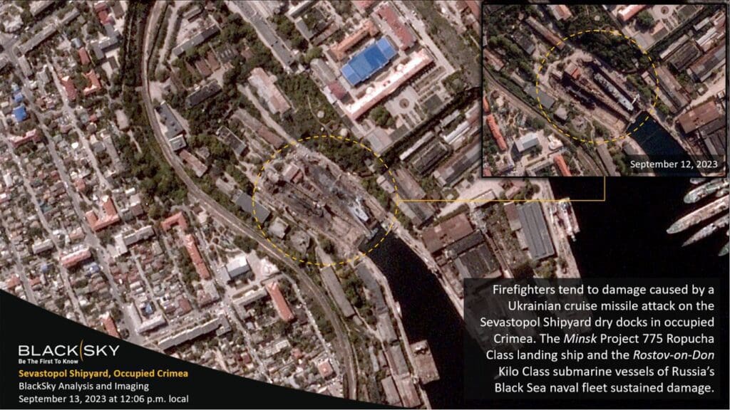 El ataque ucraniano sobre las instalaciones de la Armada rusa en Sebastopol tuvo lugar el pasado 13 de septiembre, ofensiva para la cual se utilizaron diversos sistemas tales como drones y misiles crucero. Los objetivos atacados fueron dos unidades navales que se encontraban en dique seco: el buque de desembarco de la clase Proyecto 775 / Ropucha “Minsk” y el submarino de la clase Proyecto 636.3 / Kilo mejorado “Rostov del Don”.
