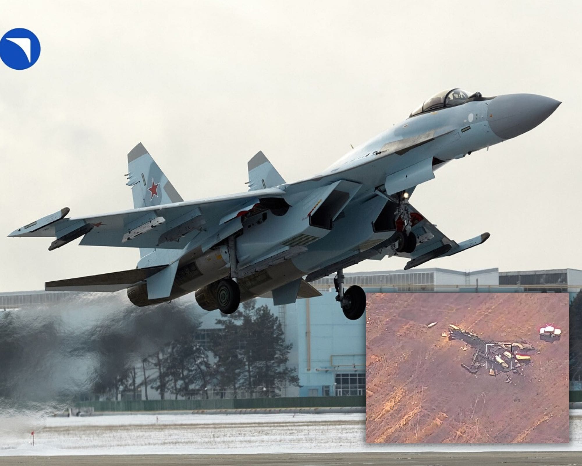 Con el transcurso de las horas, el derribo del Su-35S durante la madrugada del 29 de septiembre contó con material adicional para respaldar la supuesta pérdida, gracias a la viralización de una imagen donde se aprecian los restos calcinados del cazabombardero ruso. La foto parece ser una captura de video, el cual fue obtenidao con un drone.