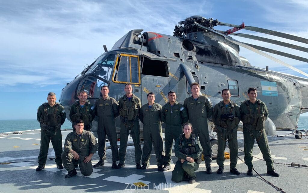 Seguido a ello, una de las actividades que se realizó en el buque fue la preparación de la dotación para el aterrizaje de helicópteros. Cómo bien hemos mencionado anteriormente, durante la Campaña Antártica de Verano, el buque rompehielos abastece a las diferentes bases en la Antártida con la ayuda del helicóptero Sea King de la Armada Argentina. En está ocasión, cómo preparación para ello y la llegada del personal de COAA, el buque recibió la llegada del UH-3H Sea King 2-H-241 y personal de la Segunda Escuadrilla Aeronaval de Helicópteros.