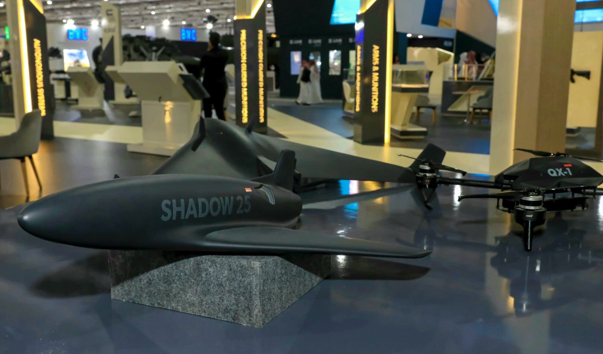 Dentro de los productos que fueron presentados pudimos observar en la Feria Expodefensa 2023: Sistemas Autónomos de la familia QX de municiones merodeadoras, el vehículo aéreo no tripulado (UAV) de ala giratoria GARMOOSHA y los vehículos aéreos no tripulados merodeadores SHADOW. También se exhibirá la serie HUNTER de municiones merodeadoras, incluido el UAV enjambre HUNTER 2-S, la línea AL TARIQ de PGM de largo alcance, municiones guiadas de precisión RASH, la línea DESERT STING de armas de planeo, el misil antibuque MANSUP-ER y el misil de defensa aérea SKYKNIGHT.