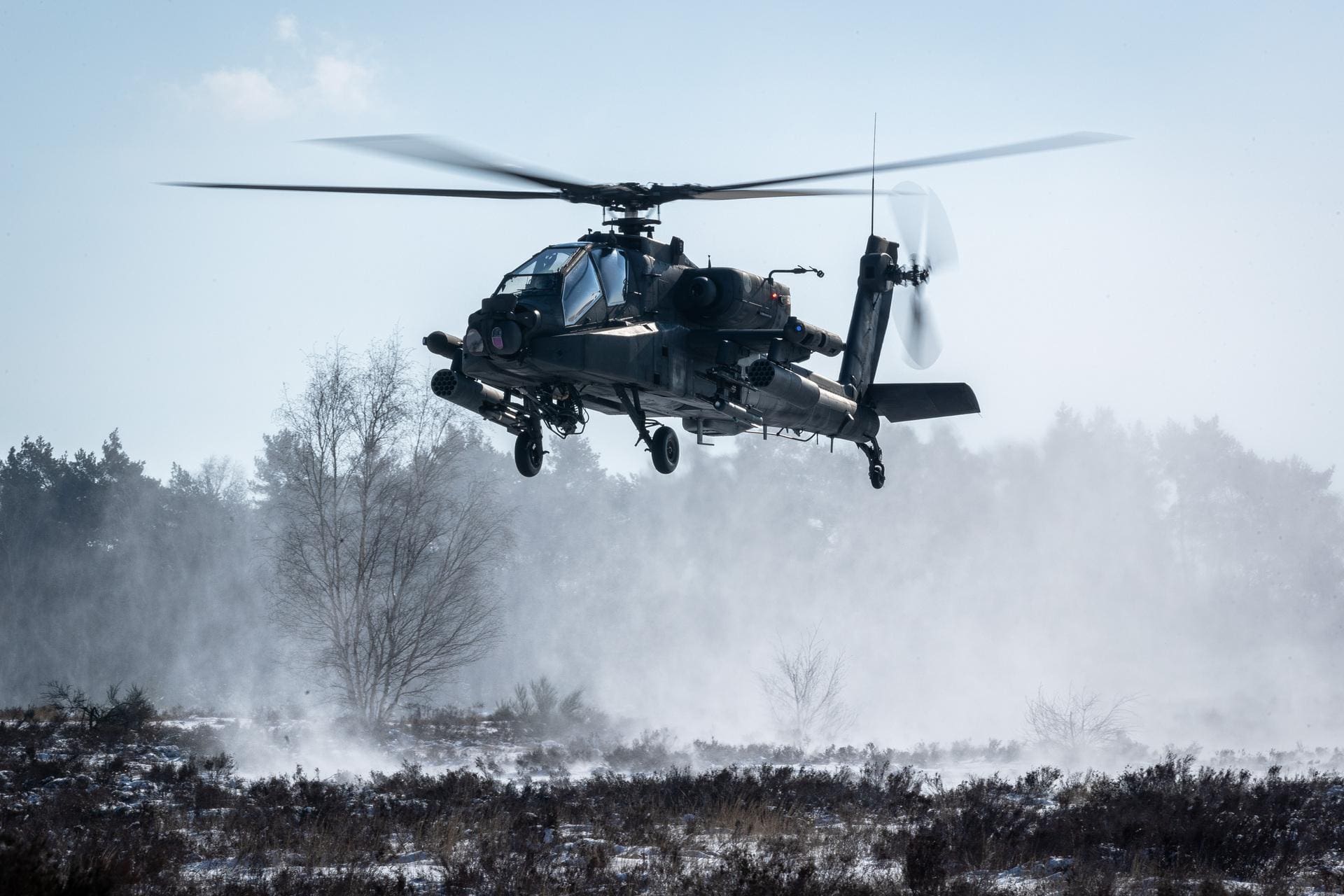 Dos helicópteros de ataque AH-64D (Delta) Apache de la Real Fuerza Aérea de los Países Bajos realizaron un último vuelo de entrenamiento antes de ser enviados a los Estados Unidos a fin de ser sometido a un proceso de modernización que los llevará a la nueva versión Echo.