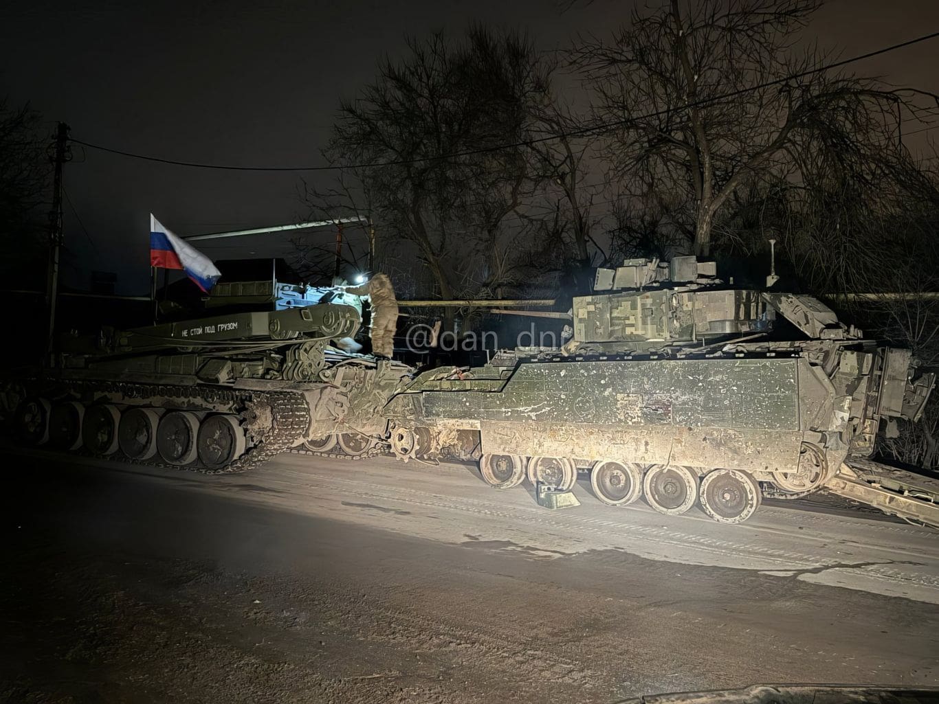 En una serie de fotografías recientemente viralizadas se aprecia como un vehículo recuperador BREM-1 ruso lleva a remolque a un M2A2 Bradley ODS-SA, vehículo de combate de infantería que fue provisto por EE.UU. hace menos de un año con la intención de equipar las nuevas unidades mecanizadas rusas. El blindado ucraniano muestra severos daños, con el faltante de su oruga derecha y una de sus ruedas de rodamiento, muy posiblemente por los efectos de una mina.