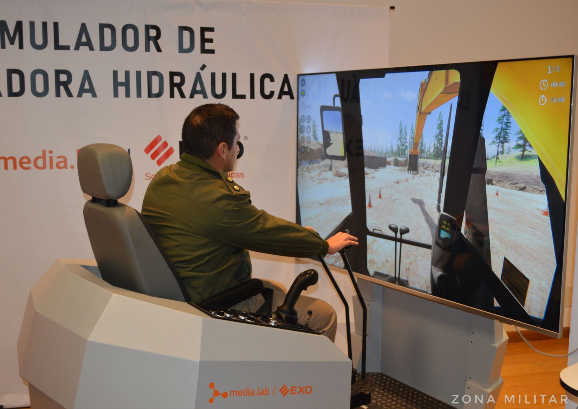 Durante la jornada de ayer, 4 de julio, Zona Militar asistió a la presentación del nuevo Simulador de Excavadora Hidráulica (SIMEX) llevada a cabo EXO Soluciones Tecnológicas y Media.Lab. El evento, que tuvo lugar en las instalaciones de EXO en la Ciudad de Buenos Aires, ofreció una primera oportunidad de interactuar con este sistema de simulación, diseñado íntegramente en Argentina. El SIMEX tiene un potencial uso dual, siendo útil tanto para empresas como para agencias gubernamentales y las Fuerzas Armadas..