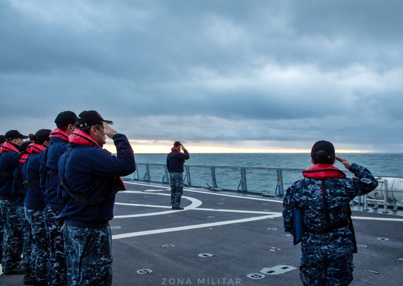 Desde el hundimiento del submarino de la Armada Argentina en el año 2017, y el posterior hallazgo de sus restos en las profundidades del Mar Argentino, es tradición que los buques de la Armada y de otras naciones rindan homenaje al ARA San Juan cada vez que navegan en las inmediaciones de la zona donde reposa eternamente su tripulación.