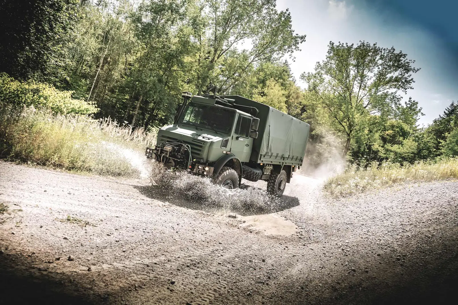 El U 4000 de Mercedes Benz es una de las últimas y más modernas variantes de la familia UNIMOG, reconocida mundialmente por fuerzas militares por su confiabilidad, sencillez y robustez. Oficialmente, desde la firma germana, destacan su capacidad de carga de hasta 5 toneladas. Impulsado por un motor 231 HP de potencia y certificado con las normas Euro III y Euro VI, posee una transmisión manual de 8 velocidades, alcanzado velocidades de hasta 90 km/h.