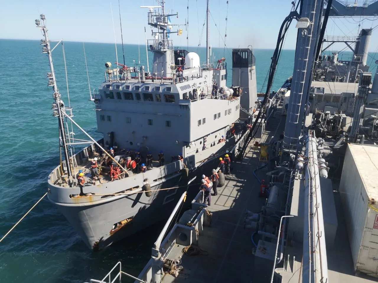 Como parte las actividades logísticas previstas para la Campaña Antártica de Verano (CAV) 2024/2025, el Buque Logístico ARA Patagonia (B-1) de la Armada Argentina realizó una maniobra clave de amadrinamiento con el Aviso ARA Puerto Argentino (A-21) en la zona de El Rincón, Bahía Blanca, con el objetivo de llevar a cabo su reabastecimiento.