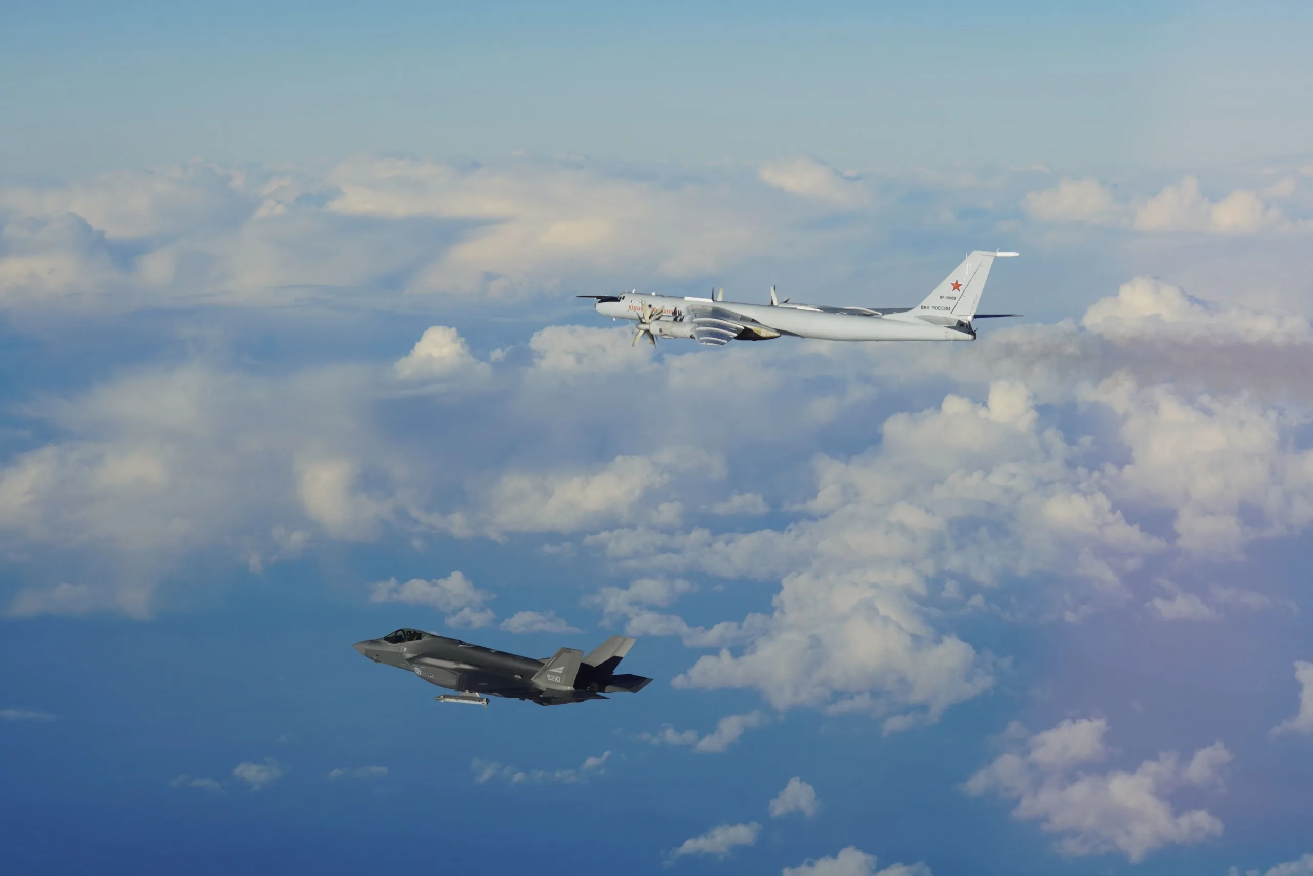 A través de sus redes sociales, la Real Fuerza Aérea de Noruega informó que dos aviones de quinta generación F-35 fueron puestos en alerta tras la detección de contactos en espacio aéreo internacional, presumiblemente sin plan de vuelo anunciado y con transpondedores apagados. Activados los protocolos de Alerta de Reacción Rápida (QRA, por sus siglas en inglés), los cazas furtivos fueron dirigidos hacia los contactos, confirmando que se trataba de aeronaves de las Fuerzas Armadas de la Federación Rusa. En detalle, se identificaron aviones de patrullaje y vigilancia de largo alcance Tu-142F (Bear F, según la designación de la OTAN) pertenecientes a la Aviación Naval de la Armada Rusa.