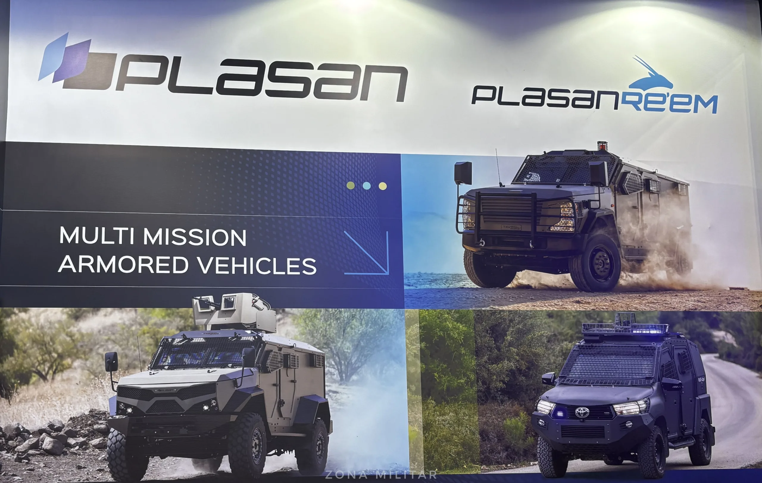 Plasan impulsó en LAAD la presentación de otras soluciones, como la reconocida Plasan Re’em basado en la plataforma Toyota Hilux. Adaptado especialmente para fuerzas policiales y de seguridad, este vehículo permite a los agentes operar sin necesidad de egresar del mismo, maximizando su seguridad en situaciones de riesgo.