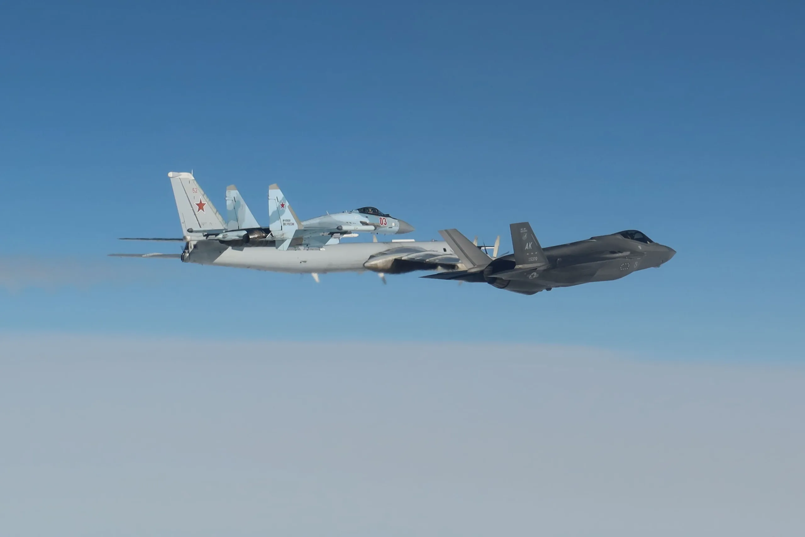 No obstante, como se constató posteriormente, se confirmó que la aeronave rusa era un bombardero estratégico Tu-95MS, acompañado durante su vuelo de patrulla en la ADIZ de Alaska por un caza Sukhoi Su-35S, uno de los más modernos en servicio con las Fuerzas Aeroespaciales, y armado con lo que aparentemente serían misiles aire-aire R-73 o R-74M.