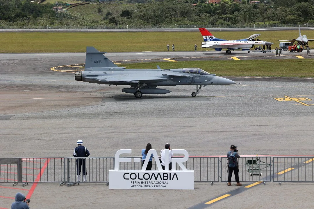 En el marco de la duodécima edición de la Feria Internacional de Aviación F-AIR 2025, dos cazas Saab JAS-39 Gripen E de la Fuerza Aérea Brasileña surcaron por primera vez los cielos colombianos, acompañados por un avión de transporte táctico Embraer KC-390 Millennium. El histórico arribo tuvo lugar en Rionegro, Antioquia, y coincidió con la reciente selección del Gripen como futuro caza multirol de la Fuerza Aeroespacial Colombiana, en reemplazo de los veteranos IAI Kfir.