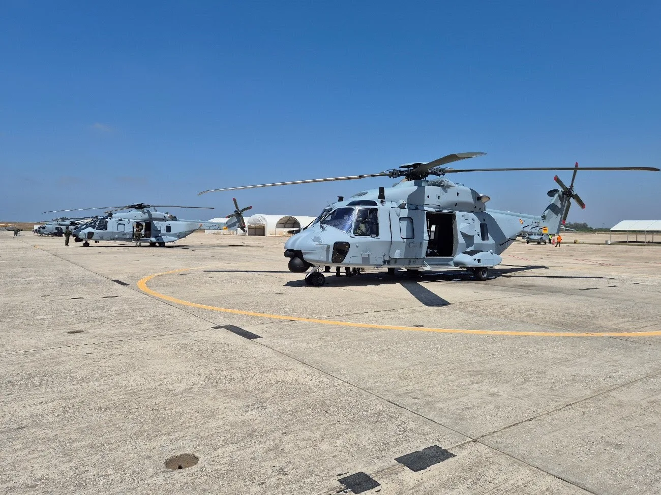 Aunque la entrega oficial de los helicópteros a la Base Naval de Rota se realizó el 30 de julio en un acto presidido por el almirante jefe del Arsenal de Cádiz, Rubén Rodríguez Peña, el cronograma de entregas había comenzado el 1 de junio con la recepción de dos de las siete unidades previstas. Además, se menciona la posibilidad de adquirir un segundo lote de seis helicópteros y se adelantan negociaciones para un eventual tercer lote, lo que elevaría la flota de NH90 MSPT a un total de 13 aeronaves.