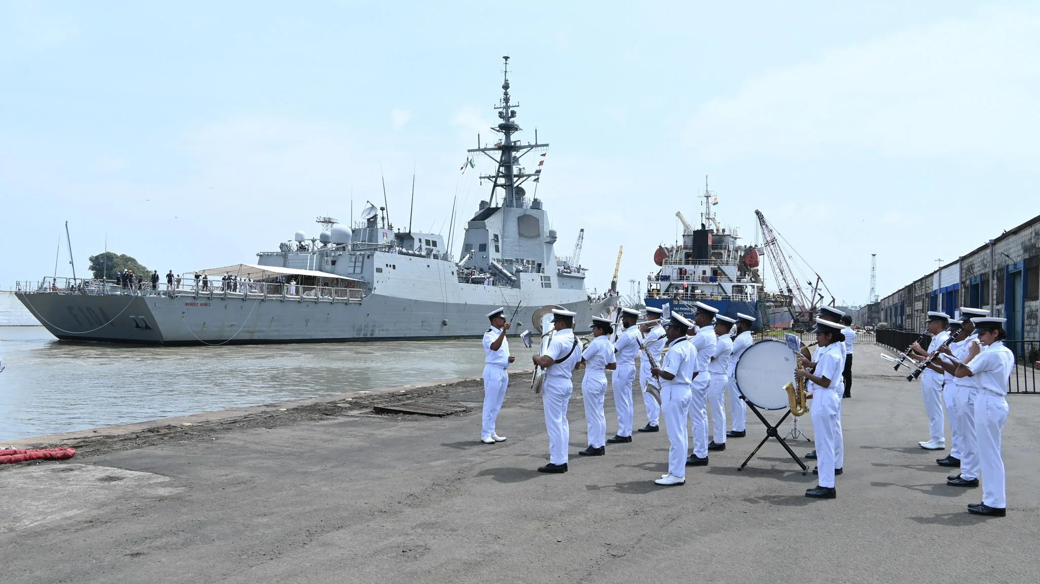 La fragata Méndez Núñez F-104 de la Armada Española ha recalado en el puerto de Bombay en India, donde desarrolló actividades operativas y de diplomacia de defensa con autoridades civiles, militares y la comunidad española residente. La escala forma parte de su tránsito de regreso a España tras concluir su integración en el Carrier Strike Group 25 (CSG-25) liderado por el portaaviones británico HMS Prince of Wales, dentro del despliegue Highmast.