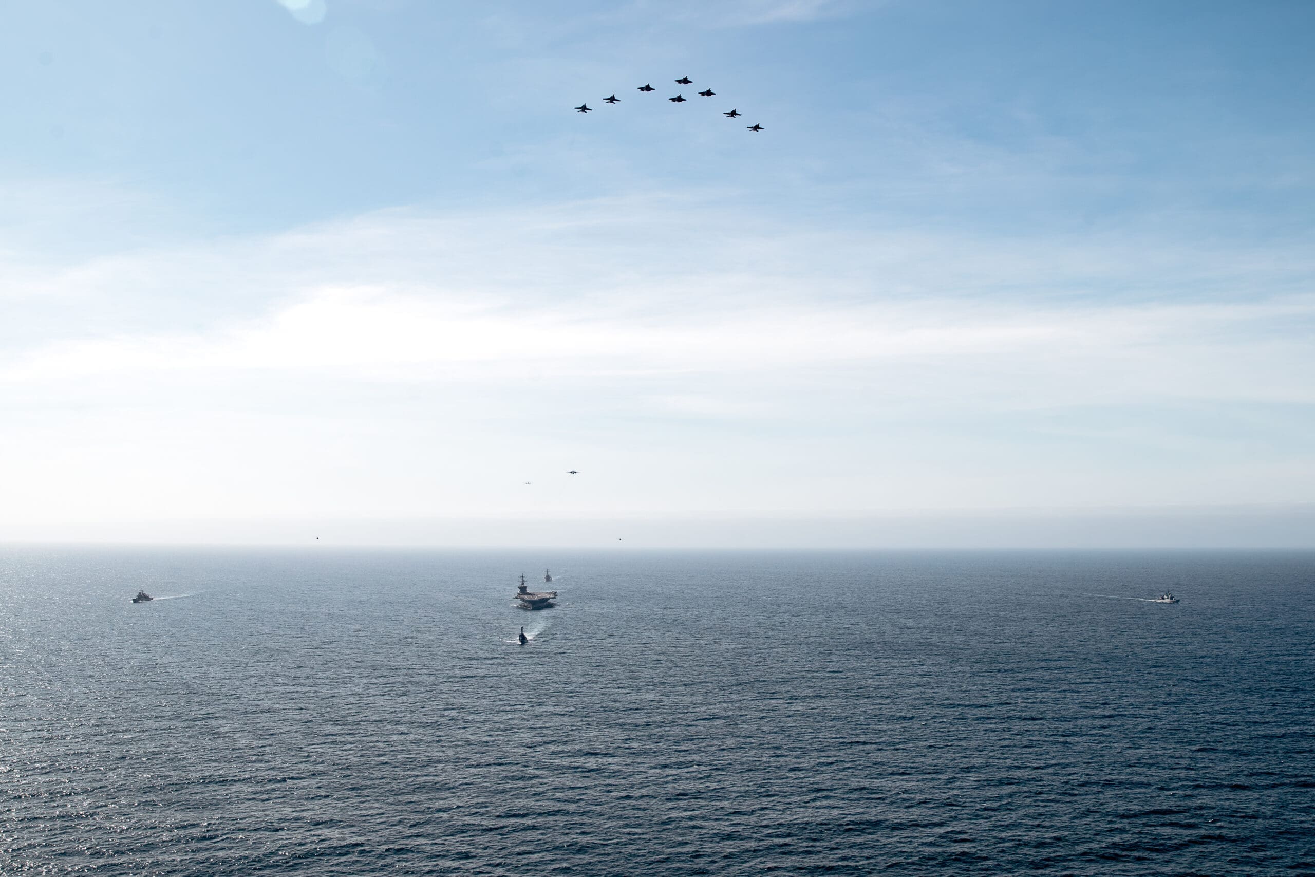 Similar to interactions with other naval forces, it is anticipated that the aircraft carrier, along with the destroyer USS Porter and the logistic ship USNS John Lenthall, will conduct a series of PASSEX exercises with the Peruvian Navy. Among the initial activities observed in photographs released by the U.S Navy are navigation and formations, as well as flights by F-35C aircraft and E-2C Hawkeye early warning aircraft. Notably, one of the Beechcraft Super King Air aircraft of the Peruvian Naval Aviation was also present.