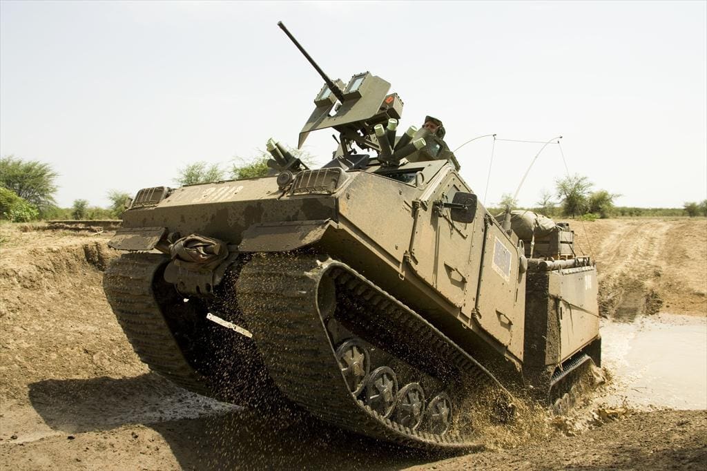 Thanks to their connected steering system and their structure with a front and rear carriage, the Viking can easily disembark from a boat onto the beach. The vehicle is armored, providing extra protection against enemy fire, and is capable of operating in a wide range of weather conditions.