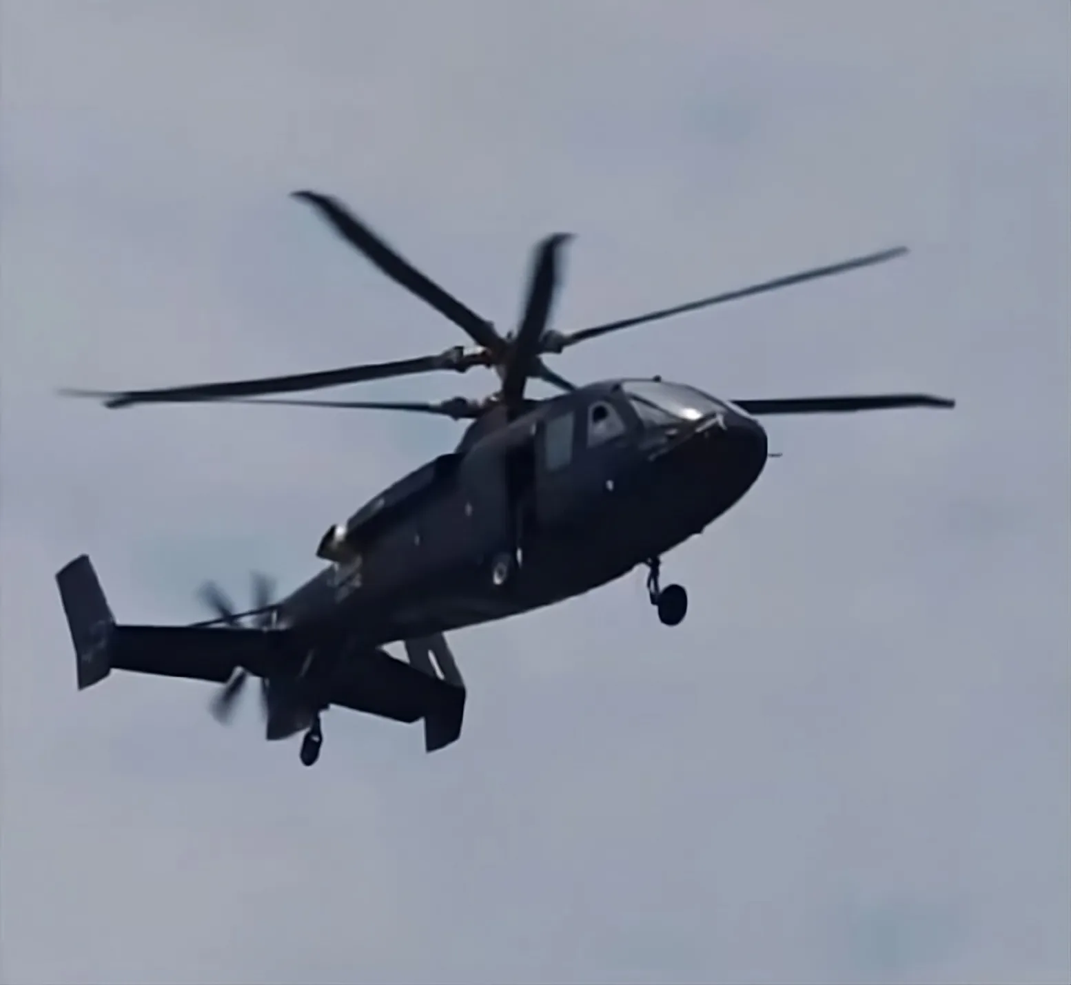 Expanding on some details, the first photographs of the new Chinese helicopter began to appear yesterday on social media, showing the prototype in full flight and clearly highlighting its similarities with the U.S. S-97 model. In addition to the aforementioned rotor configuration, the aircraft openly displays its nearly identical fuselage shape, which is also reflected in its dimensions, landing gear design, and tail with a large horizontal stabilizer—differing only in the arrangement of its fins.