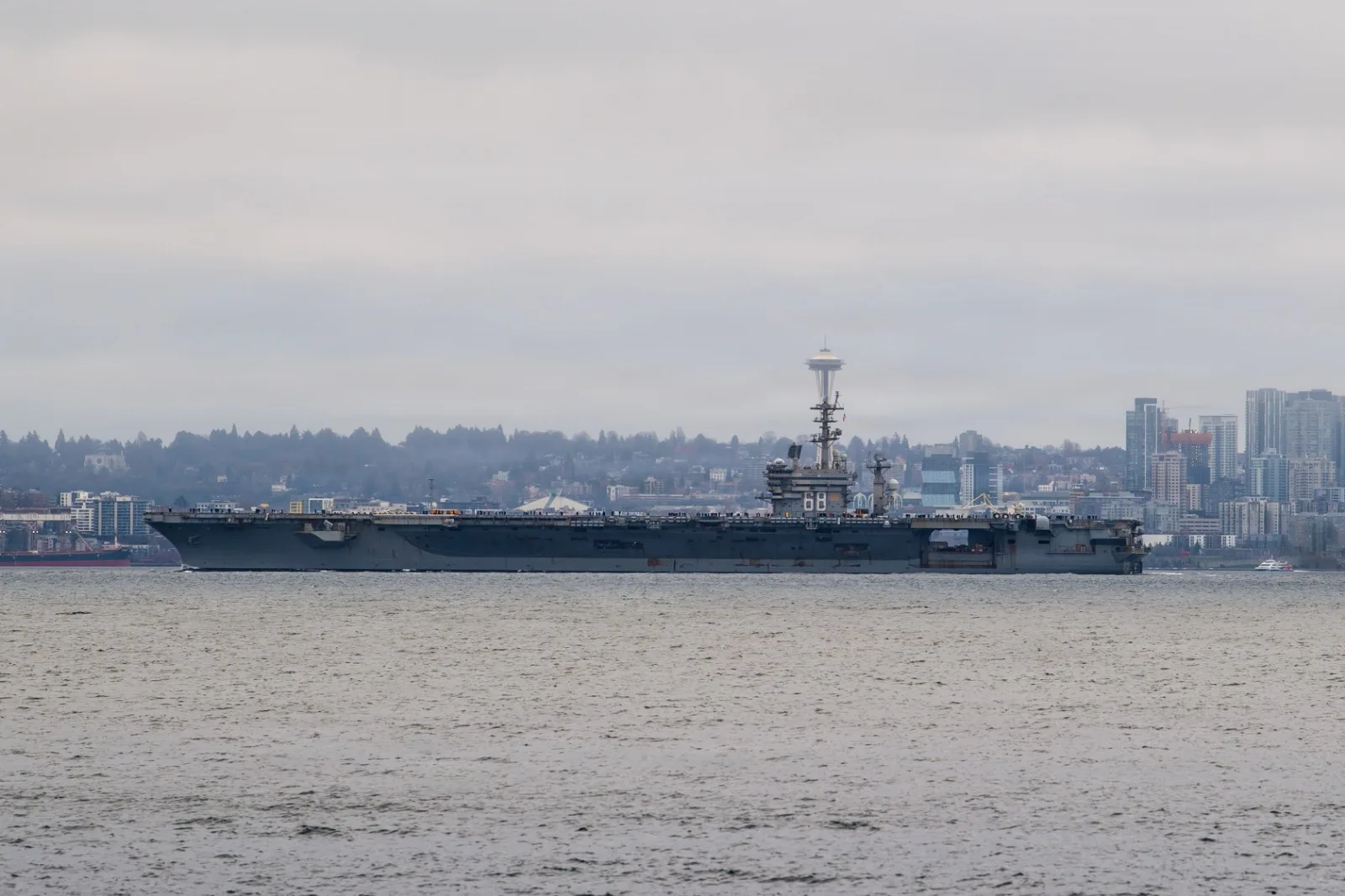 Currently, the lead ship of the Nimitz class is conducting a voyage that began days ago in Bremerton, Washington, with its destination set for Naval Station Norfolk, where the process of retiring the ship from service and the beginning of specialized procedures for the removal of nuclear fuel from its reactors were originally expected to take place.