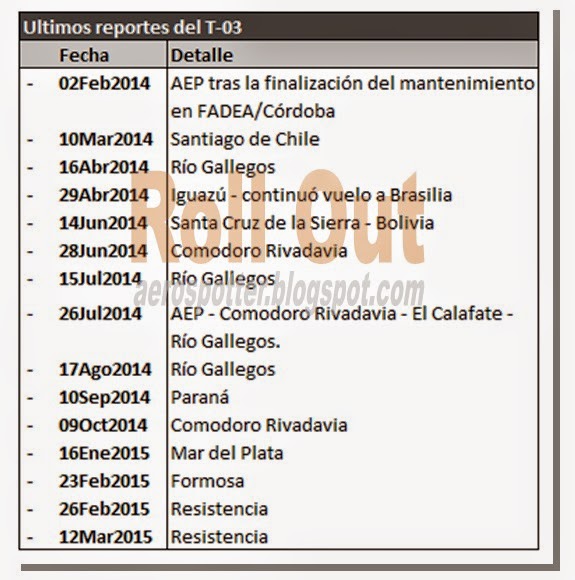 T-03- fue otorgada a la llegada del Boeing 757. En el año 2000, fue remitido a Holanda a las instalaciones de Fokker la división aeronáutica de Stork, a fin que le hicieran un reacondicionamiento total. La aeronave permaneció retenido en el Viejo Continente por cerca de un año por retraso en los pagos que el gobierno debía desembolsar.