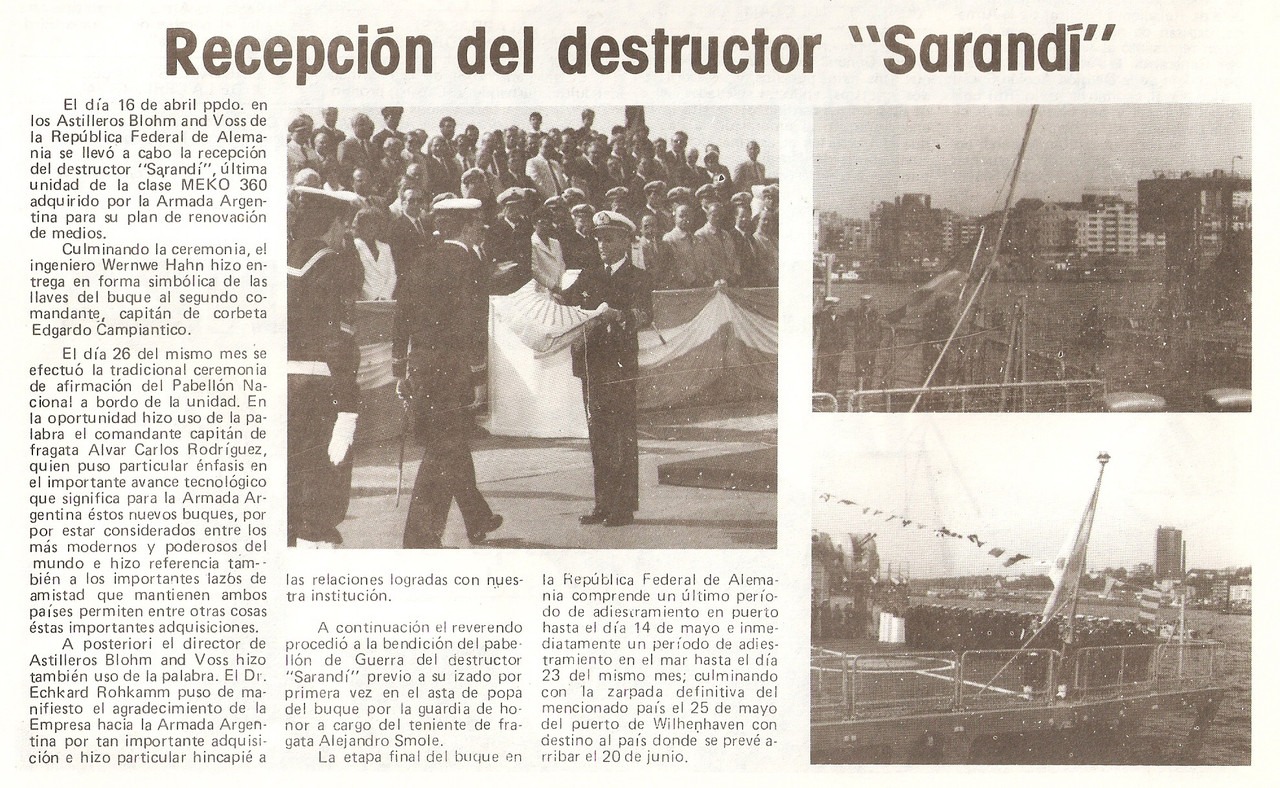 Vinieron como reemplazo urgente de los DD de la clase Buenos Aires que ya no daban más. Las A-69 no estaban "previstas" sino que se aprovechó la ocasión y la necesidad por el conflicto con Chile (recién se incorporan en 1978!) A tu lista sumale los dos submarinos Guppy cuando estaban por incorporar los 209-1200.Aprovecho este hilo para una consulta. El Bouchard y el Piedrabuena fueron incorporados a la Armada en plenos años '70, con varias décadas encima. Llama la atención que en momentos en que la Armada estaba en plena incorporación de material nuevo (los D-42, las corbetas francesas) se incorporara material bastante viejo (de hecho, el CRUBE tenía una edad similar pero llegó a nuestras aguas mucho antes). ¿Cuál fue el motivo?