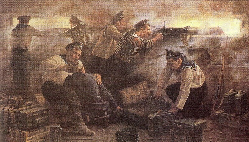 MARINEROS DE LA GUARDIA EN EL MUELLE DEL NEVA EN EL PALACIO DE INVIERNO