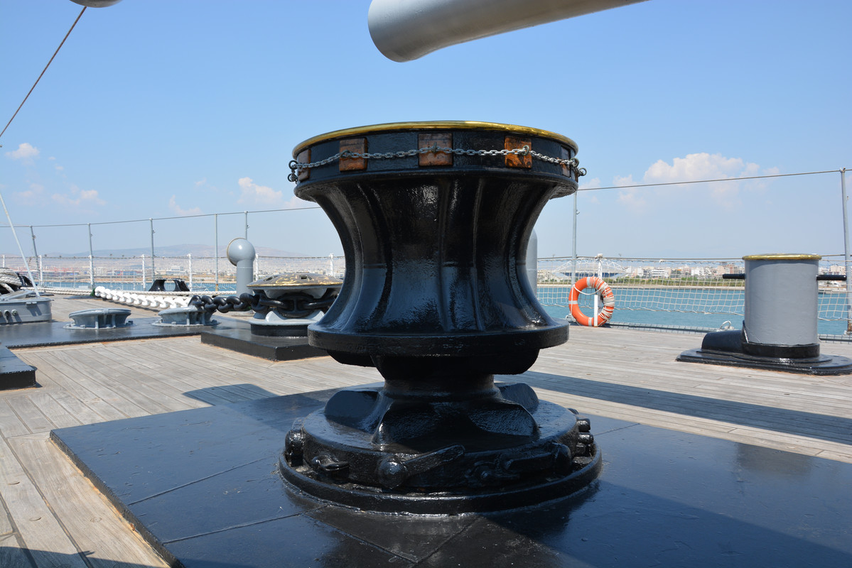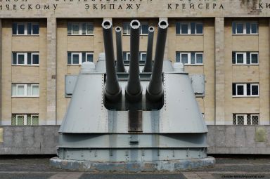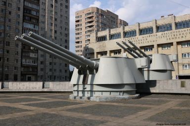 Cañon de banda, en general la artilleria de la epoca en la Armada, era Obukhov, que copiaba y mejoraba piezas extranjeras, en general la base de la mayoria de las piezas desde el comienzo del SXX son modelos Schneider - Canet