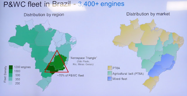 Entre los mercados civil y militar, actualmente hay más de 3400 aviones con motor Pratt & Whitney Canada en servicio en el país, principalmente en el segmento de aviación general, cubriendo aproximadamente 110 aplicaciones diferentes para casi 1320 operadores. Los motores de Pratt & Whitney Canada operados en el país han representado más de 20 millones de las 1.000 millones de horas de vuelo de la flota de motores.