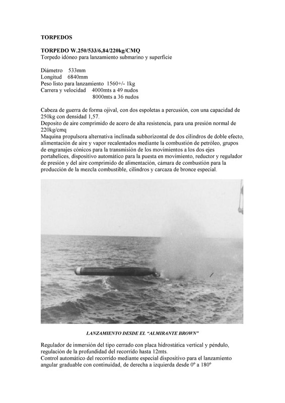 Se menciona en bibliografía extranjera a los Type W250 x 533,4/7,5 AR. 200 unidades entregadas a la Argentina. Periodo de entrega 1929-1938. Motor de 2 cilindros (ubicados horizontalmente). Velocidad: 42 nudos a 4.000 metros y 26 nudos a 12.000 metros. Denominado 'AR' para Argentina. En 1928 la ARA estipuló un contrato para adquirir 100 torpedos de 53cm, número que se dobló en 1936.