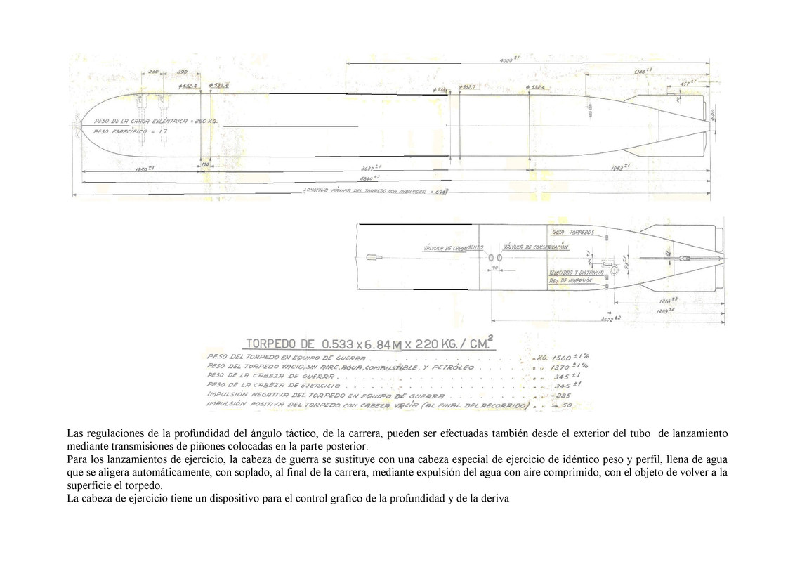 Por otro lado, esos torpedos Tipo 0,45 x 5,75 m (220 kg/cm3) ¿Tienen algún detalle histórico o técnico adicional?
