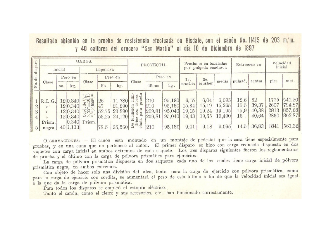 227 milímetros a 3.000 metros (Artículo de la Revista de Publicaciones Navales A°1903).