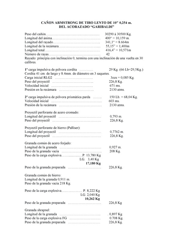 671 metros por segundo -a la velocidad le puede corresponder una disminución por ser el cañón del “Garibaldi”, por lo obtenido en las pruebas ó por una carga reducida (Imagen N°AR-01 de MWAA); y