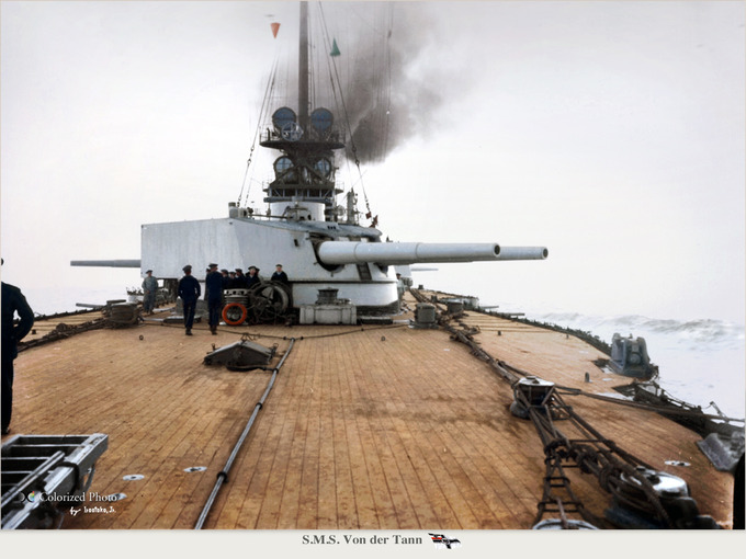Durante la batalla naval frente al Skagerrak, "VON DER TANN" recibió cuatro impactos. El segundo impacto, de un proyectil de 34 cm, golpeó la torre "C" y el mecanismo de dirección de estribor debajo y causó daños considerables allí.