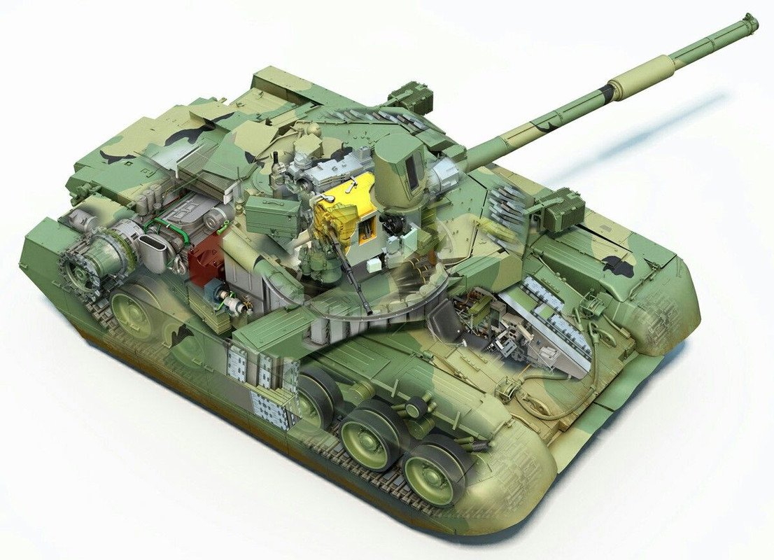 Cutaway MBT T-84M Oplot, version ucraniana del T-80 construida en Ucrania
