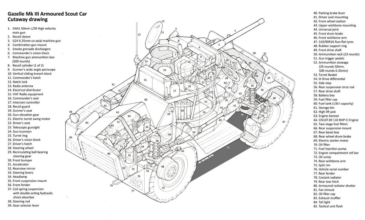 Cutaway AMX-13, un corte lateral del tanque de guerra medio frances de la decada de los 50`s