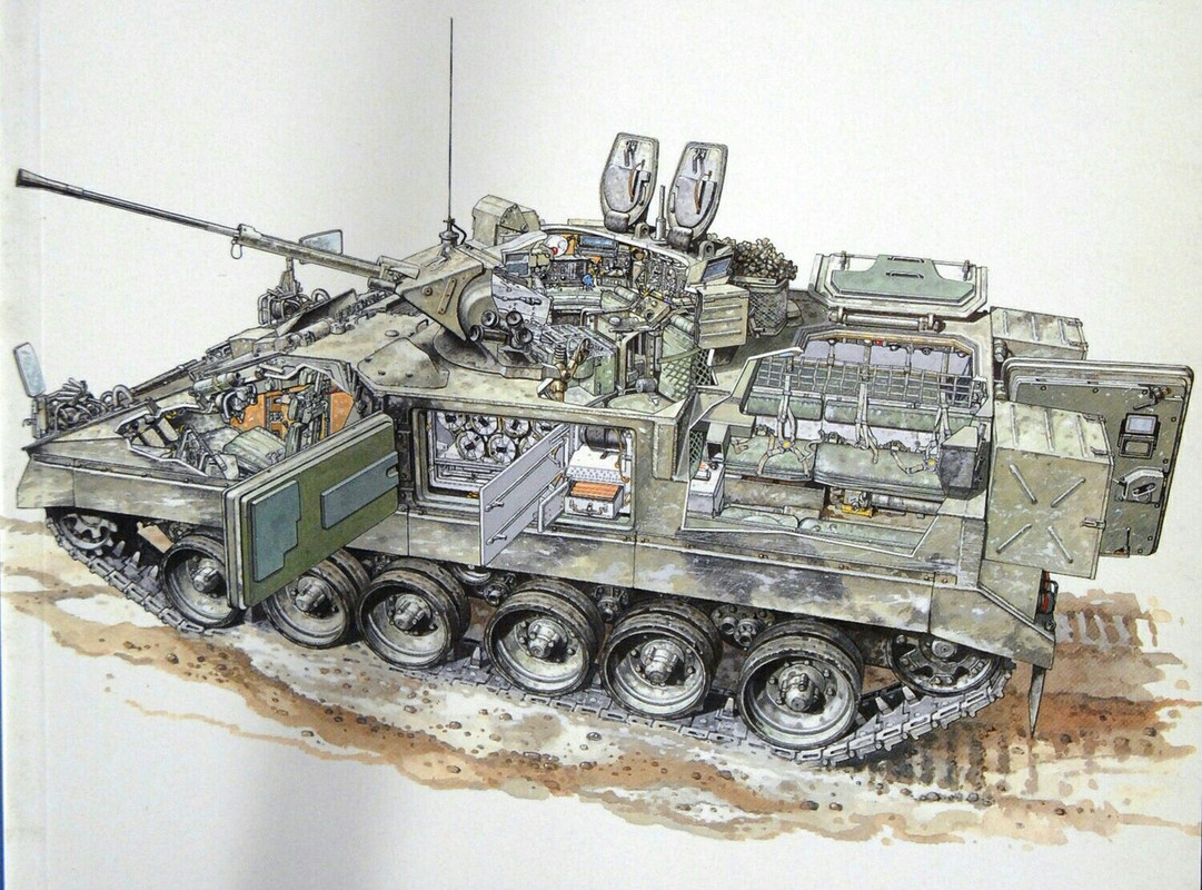 Cutaway BMP1, un corte lateral vehiculo ligero anfibio sovietico armado con misiles antitanque filogiados usado durante la guerra del Yon Kippur por Egipto y Siria