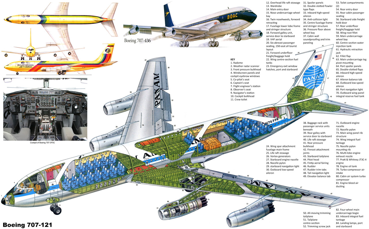 El Boeing 707 no fue solo el mejor avión del momento era un cambio radical y revolucionario; No solo llevaba más pasajeros, los llevaba más rápido y los llevaba más alto fuera del alcance de la mayoría de las turbulencias atmosféricas en su amplia cabina presurizada, alas en flecha, motores jets en góndolas como los del bombardero B-52 y alcances cada vez mayores.