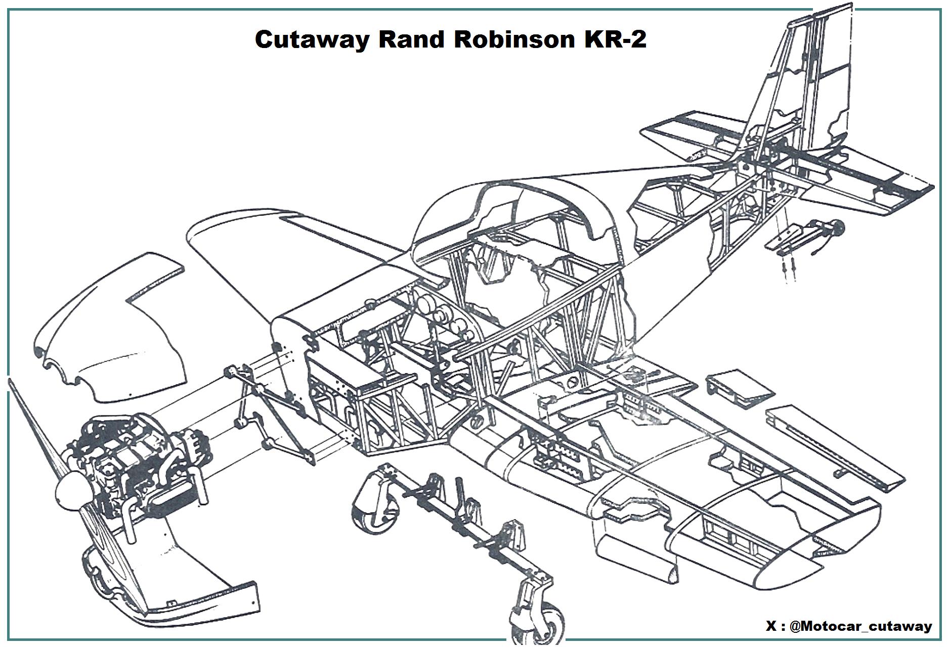 Cutaway Rand Robinson KR-2 el kit plane de un exitoso avión de construcción casera movido por un motor VW boxer (Le siguieron versiones modificadas mas potentes equipadas con motores Lycoming), que le permitía unos costos de operación sumamente económicos con una extraordinaria autonomía, imagen esta aparecida en Popular Mechanics a principio de los años 80`s
