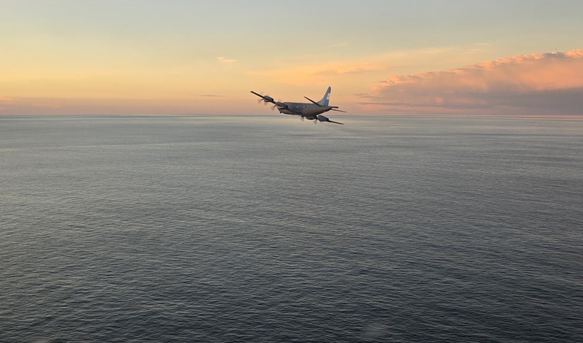La aeronave P3-C se dirigió hacia la concentración de buques pesqueros en inmediaciones de la milla 200, sobrevolando el área durante más de tres horas y cubriendo una extensión de más de 216.000 millas náuticas cuadradas. Durante la misión, en conjunto con las unidades de superficie en el área, se detectaron 380 buques pesqueros a lo largo de 90 millas náuticas de norte a sur por fuera de la Zona Económica Exclusiva.