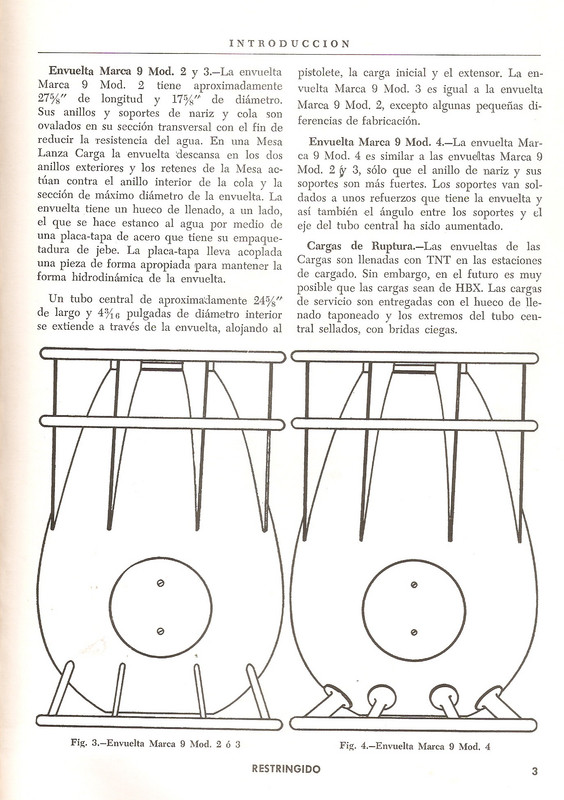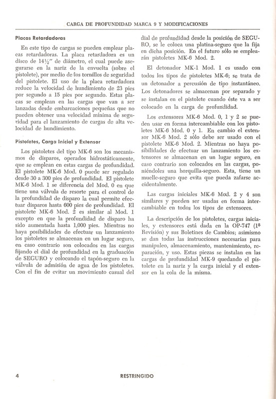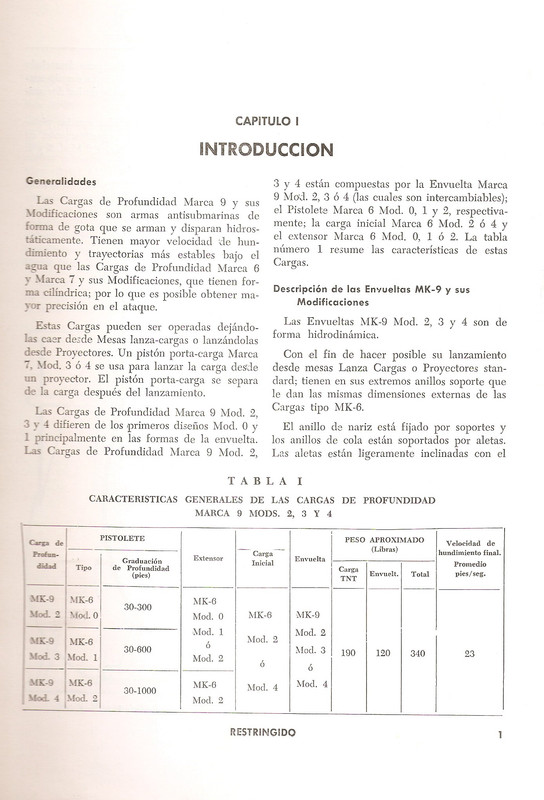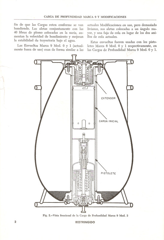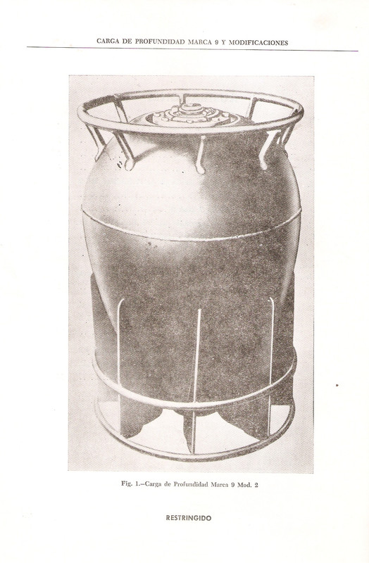 Estas bombas llegaron con los "Fletcher", y posteriormente, en cantidad, hasta su llegada habian modelos argentinos, copias de inglesas, modificadas o mejoradas, mucho ingenio no se necesitaba, un dispositivo regulador de profundidad, detonador y explosivo, metido en un tacho, la diferencia la hacia el explosivo, con el tiempo mas potentes y estables