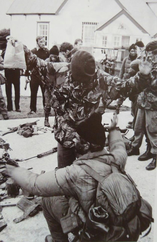 Obsérvese al Británico con un cinturón Tempex Monocróm al hombro sustraído a las fuerzas Argentinas.