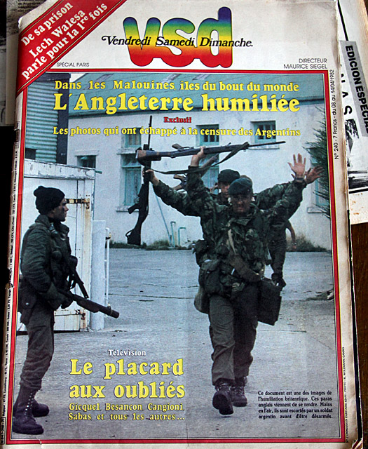 Archiconocida foto del 2 de abril (fue tapa de la revista Gente) donde se ve al Comando Anfibio Jacinto Batista a la izquierda dando órdenes a una fila de Royal Marines, el primero de esta fila es Lou Armour, quien regresó a las islas con la Task Force y combatió hasta el 14 de junio. Luego de dejar a los RM se dedicó al teatro junto a otros veteranos, como él mismo narra en un video de YouTube. (Un veterano Royal Marine en Buenos Aires)
