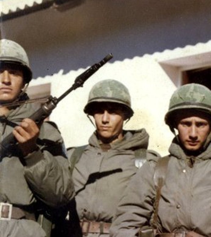 si no hay dudas que son Personal del Ejercito, es mas son Oficiales y Suboficiales por la pistolera y los clasicos bigotes, pero las 12,7, las veo mas emplazada para descripcion y reconocimientos del terreno y puntos de referencias. que para su uso, no tienen protecion de frente y el tirador tiene medio cuerpo afuera del pozo, tampoco observo la municion, ni elementos de jalonamiento, puede ser que con el anteojo de campaña y mediante la Descripcion del terreno, se nota al Cuadro con la mano indicando al frente, esten realizando una descripcion del terreno y realizando una carta de tiro ( puede ser) no creo que sea solo para la Foti, como dicen mis nietos