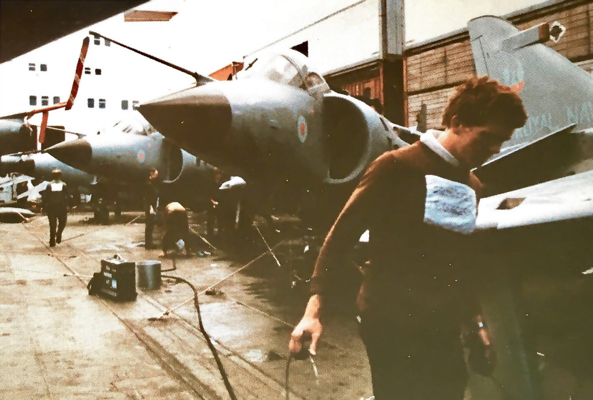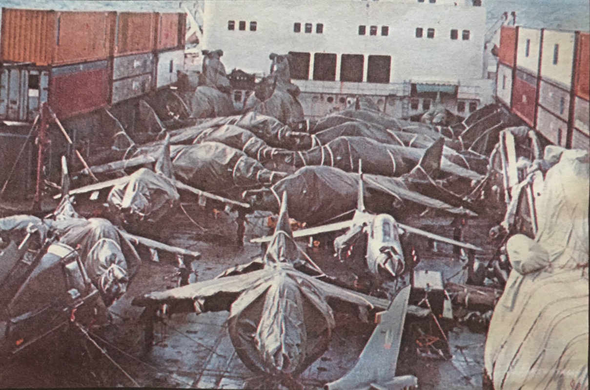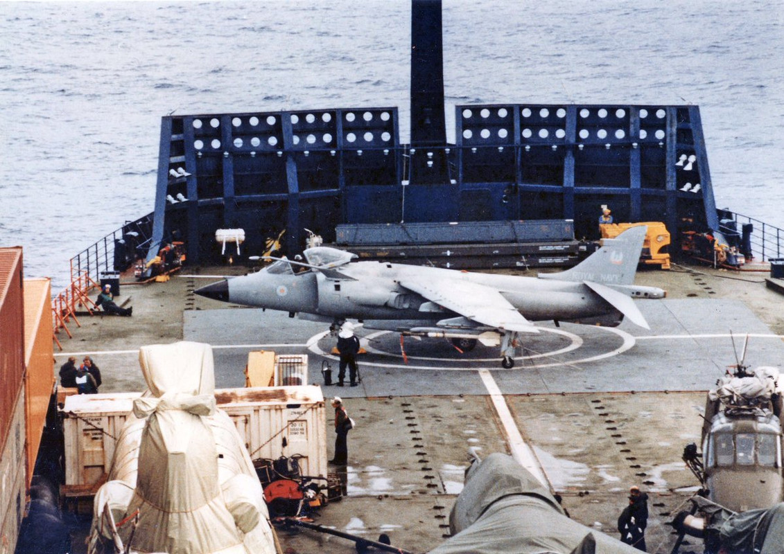 La data de la foto dice: Alistamiento Sea Harrier ante el acercamiento de un 707 argentino - Piloto CO Tim Gedge