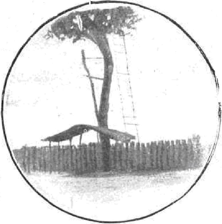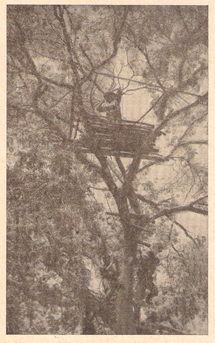 Mangrullo instalado en un gigantesco pacará, la observacion esta dirigida a las picadas y claros del bosque