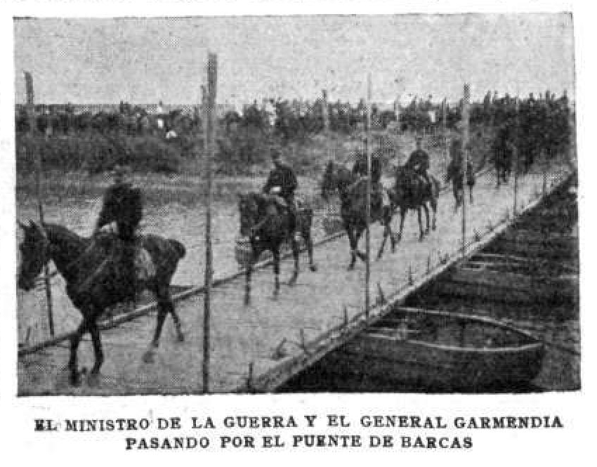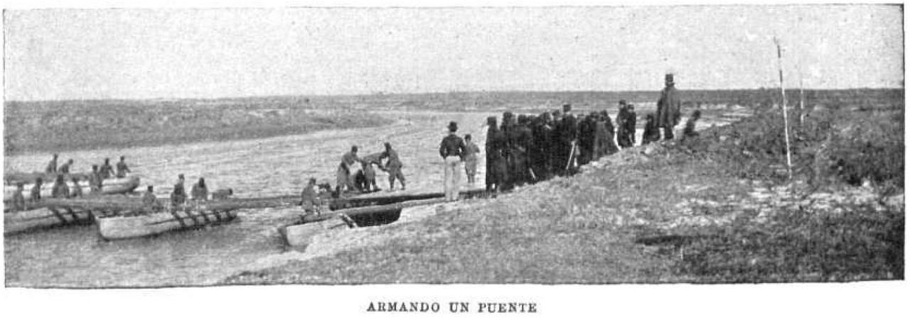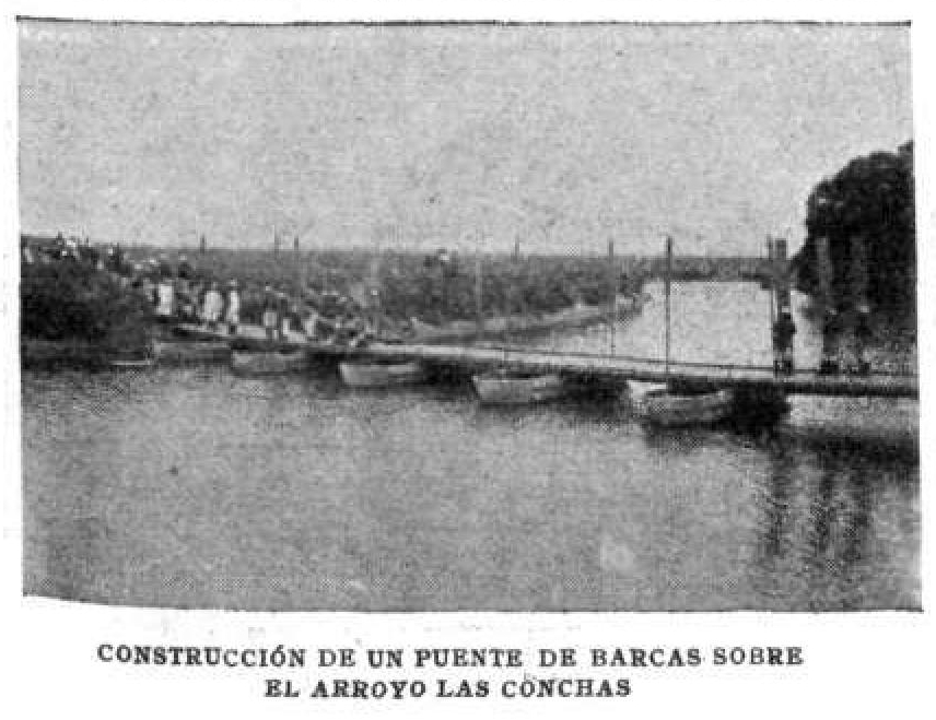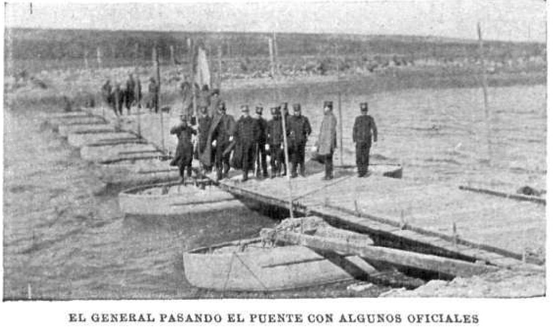 Tropas del 6º y 7º cuerpos armando un puente sobre la laguna Gasoura, el Capitan Correa supervisando las tareas