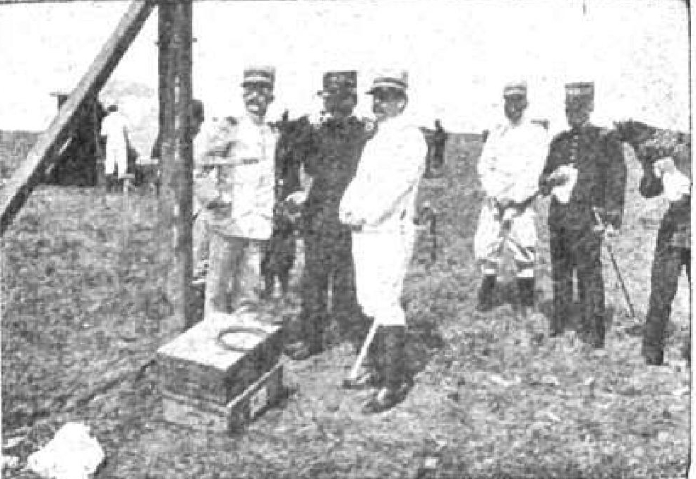 Fotografia tomada seis horas antes de la catastrofe y en la que esta el Subteniente Montrull y sus jefes