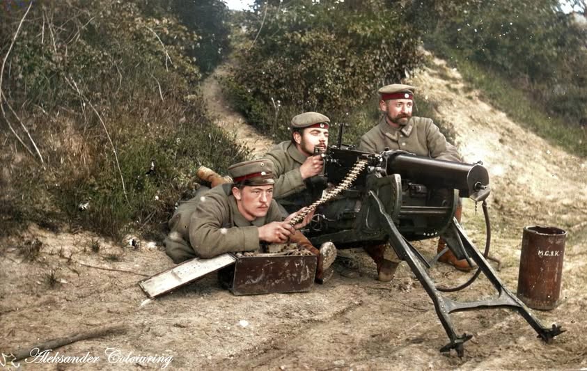 Artilleros de Kgl. Bayer. Landwehr-Infanterie-Regiment Nr. 6 con un Maschinengewehr 1908 (MG08).
