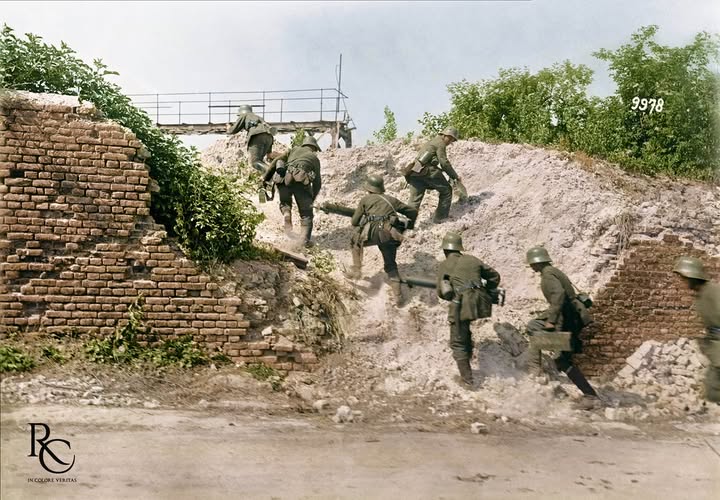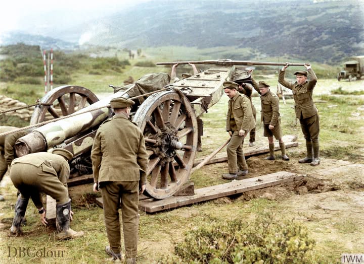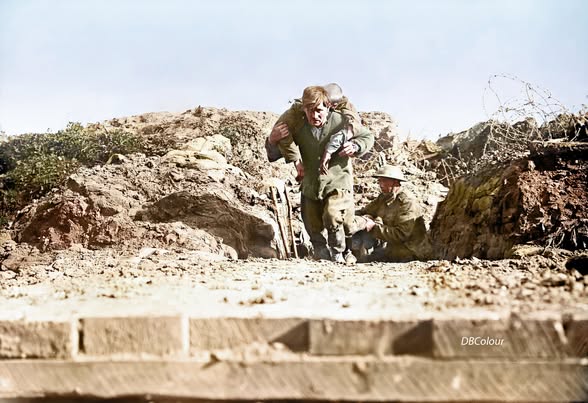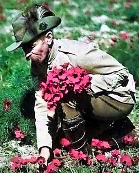 La fotografía fue tomada en 1918, , por el capitán Frank Hurley, un conocido fotógrafo oficial de guerra australiano y subtitulada 'Un jinete ligero australiano recolectando anémonas cerca de Belah en Palestina'.